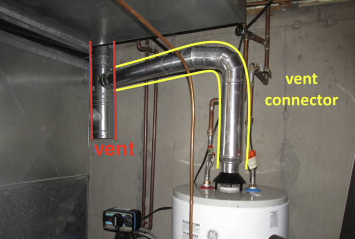 Due to inadequate combustion exhaust venting, combustion gases cool before they reach the exterior. This is usually caused by an excessively long- or too many bends in the- combustion vent. Cooling combustion gases condense on the inside of the galvanized steel vent where the condensation reacts with the galvanized steel, and the result is corrosion.