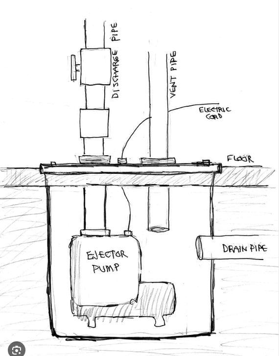 • Type of system: sewage ejector vs sump pump vs combination, and which fixtures appear tied in.
